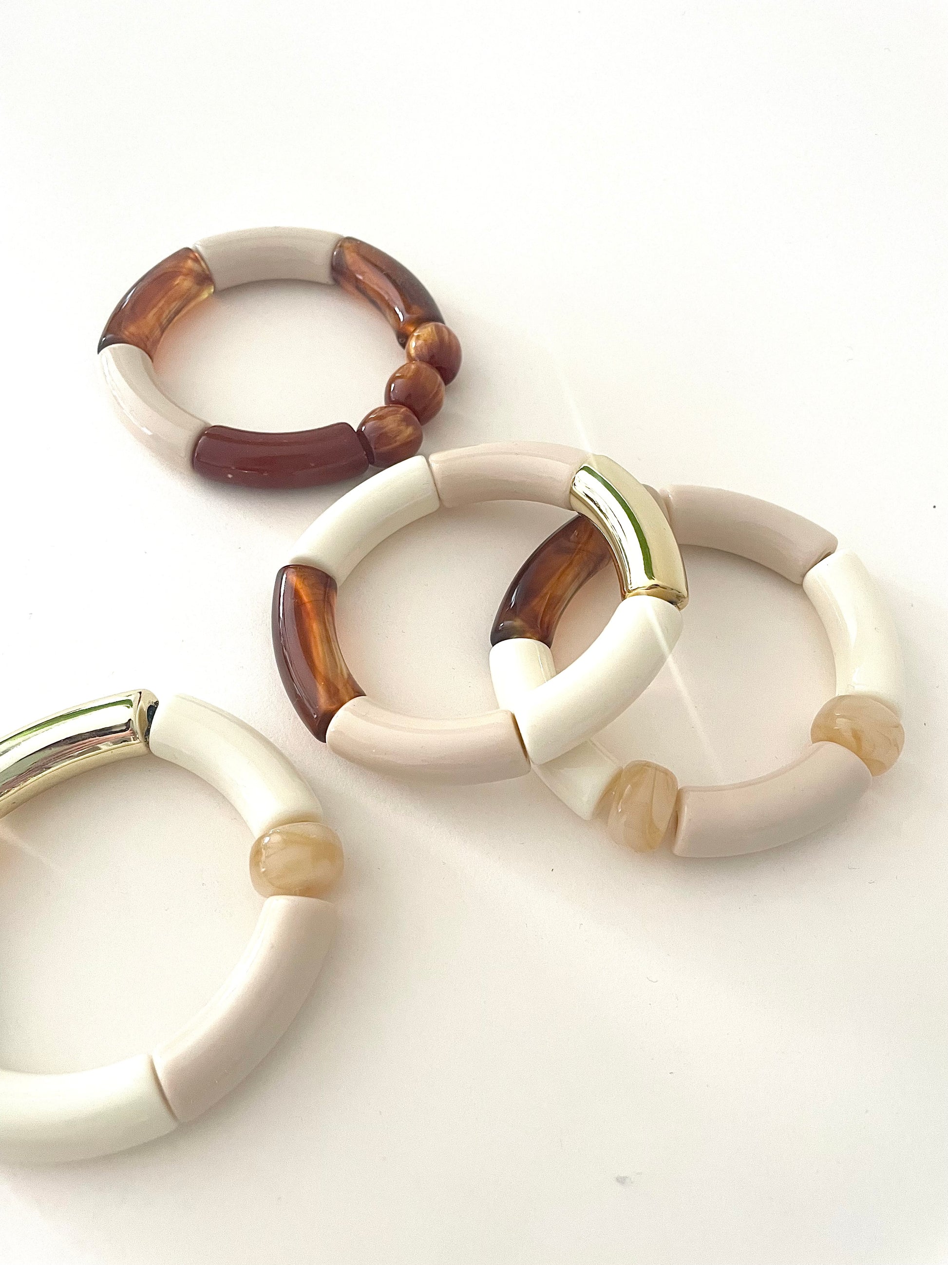 Bracelets LILIANE tons blanc beige marron grosses perles