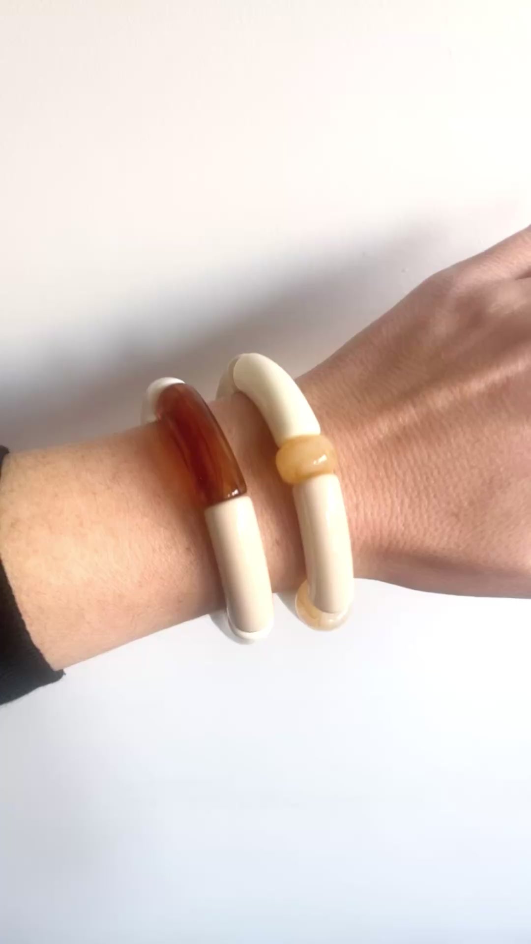 Porte-le seul pour un effet minimaliste assumé, ou empile-le avec d'autres LILIANE pour jouer sur les textures et les matières. Les tons blanc, beige et marron s'intègrent naturellement à n'importe quelle combinaison — c'est leur force.